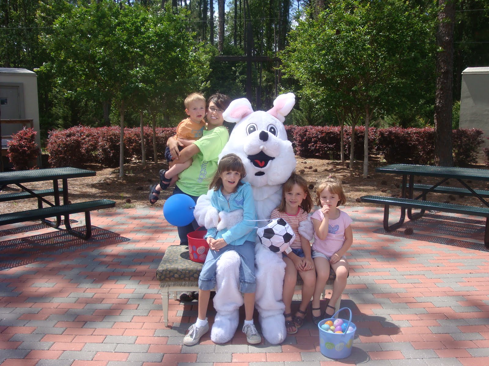 Saturday we went to Eggstravaganza at church. Kendra was helping out with the event, she was stationed with the bunny. We joked that she was Bunny Secret Service to protect the bunny from Danica. Juliana is absolutely TERRIFIED of anyone in a costume, Danica however has a special kind of love for bunnies.